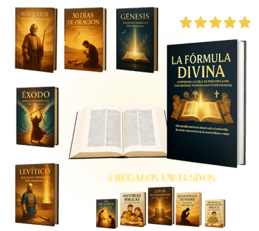 Al adquirir LA FÓRMULA DIVINA hoy, recibirás totalmente GRATIS estos 5 regalos exclusivos que complementarán tu estudio y crecimiento espiritual: